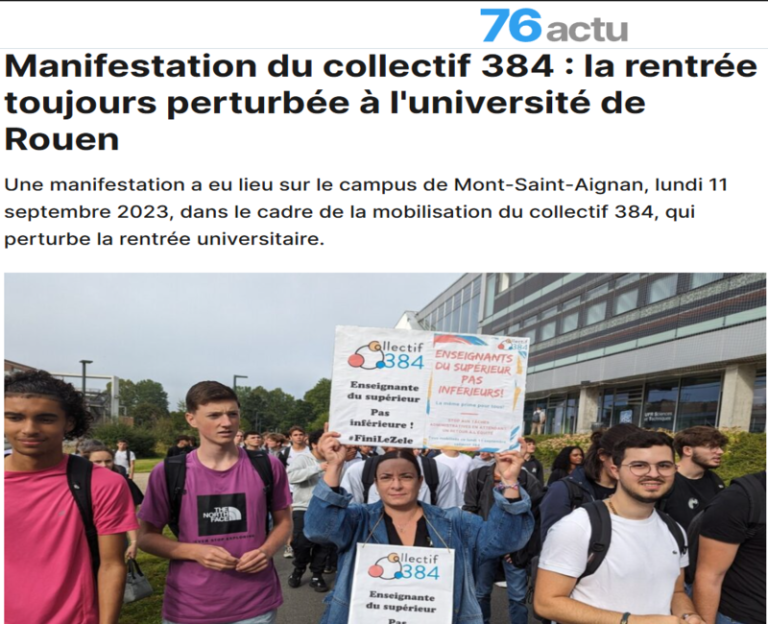 Date : 11 septembre 2023 Un article sur la mobilisation du collectif sur le campus de Mont-Saint-Aignan.