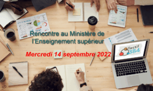 24 mai 2023 – Troisième rencontre au Ministère de l’Enseignement Supérieur. Cet échange a permis de faire un point d’étape sur les précédentes discussions et de relancer les demandes d’alignement indemnitaire et de valorisation des missions des enseignants du supérieur.